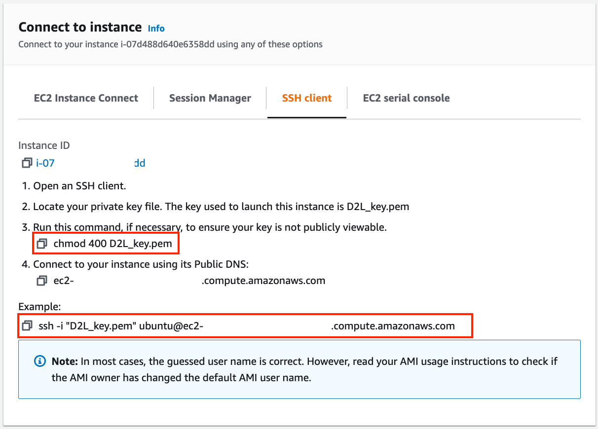 ssh -i "D2L_key.pem" ubuntu@ec2-xx-xxx-xxx-xxx.y.compute.amazonaws.com