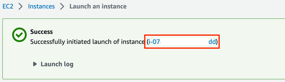 “Launch Instance” をクリックして作成したインスタンスを起動する。 図 23.3.8 に示すインスタンス ID をクリックすると、このインスタンスの状態を確認できる。